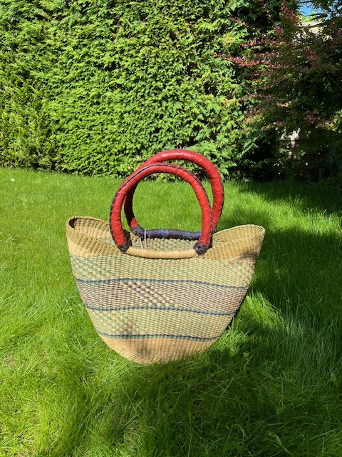Les paniers traditionnels bolga avec des anses en cuir, sont tressés à la main au Ghana dans la région de Bolgatanga, avec une herbe de la savane, communément appelée, herbe à éléphant. La vannerie de Boltanga est une activité dédiée principalement aux femmes, mais elle est aussi pratiquée par des hommes, car c’est devenu une activité génératrice de revenus et de d’emplois. Ce panier sera un excellent choix pour sa qualité de fabrication artisanale, son charme remarquable et sa bonne conception et le tout à un prix très raisonnable, vu la qualité et l’origine de fabrication. Pour des raisons d’éthique, nous respectons les principes du commerce équitable dans le cadre de notre collaboration avec les fabricants.
