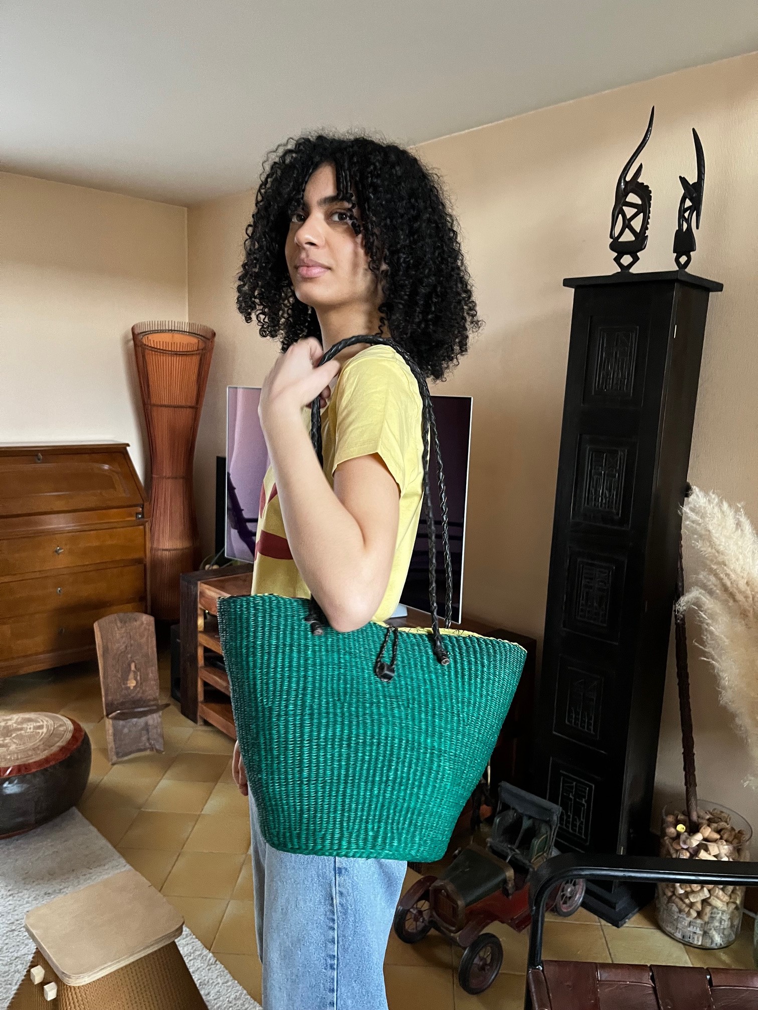 Les sacs bandoulière sont fabriqués à la main au Ghana dans la région de Bolgatanga, avec une herbe de la savane, communément appelée, herbe à éléphant. Les lanières sont en cuire, la doublure intérieure est faite dans un tissu en coton qui s’allie avec la couleur du sac et dispose d’une sécurité de fermeture. La vannerie de Boltanga est une activité dédiée principalement aux femmes, mais elle est aussi pratiquée par des hommes, car c’est devenu une activité génératrice de revenus et de d’emplois. Ce charmant sac original sera un excellent choix pour sa qualité de fabrication artisanale, son charme indéniable et la bonne conception de son intérieur, le tout à un prix très raisonnable vu la qualité et l’origine de fabrication. Pour des raisons d’éthique, nous respectons les principes du commerce équitable dans le cadre de notre collaboration avec les fabricants.