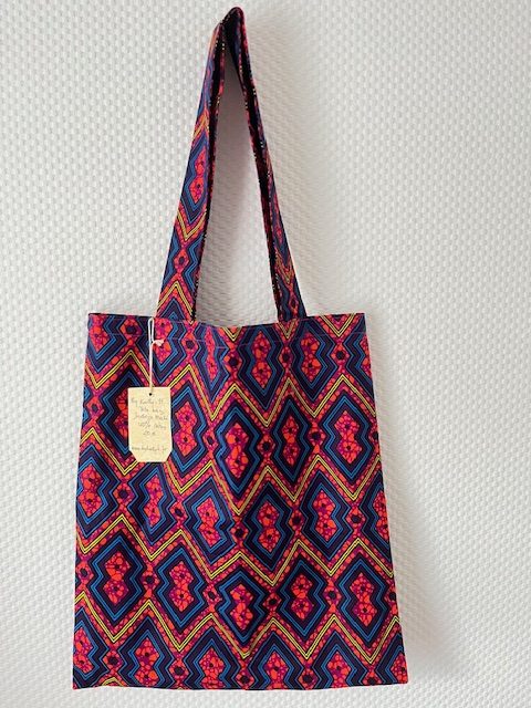 Tote bag en vrai tissu wax authentifié de la marque congolaise Waxbazaar, qui utilise comme motifs les signes du peuple kubu. Cousu en région parisienne, cet   accessoire éthique, éco responsable et stylé apportera une touche exotique à  votre tenue. Idée cadeau originale pour toutes les femmes.